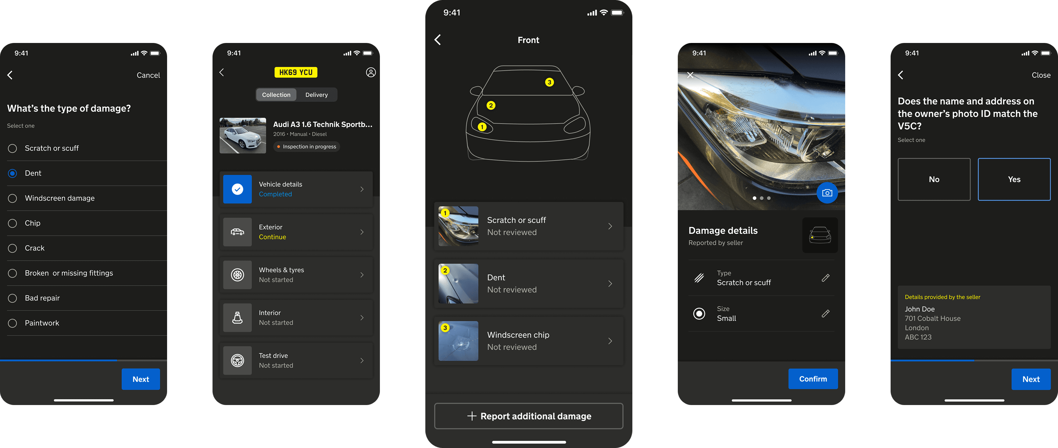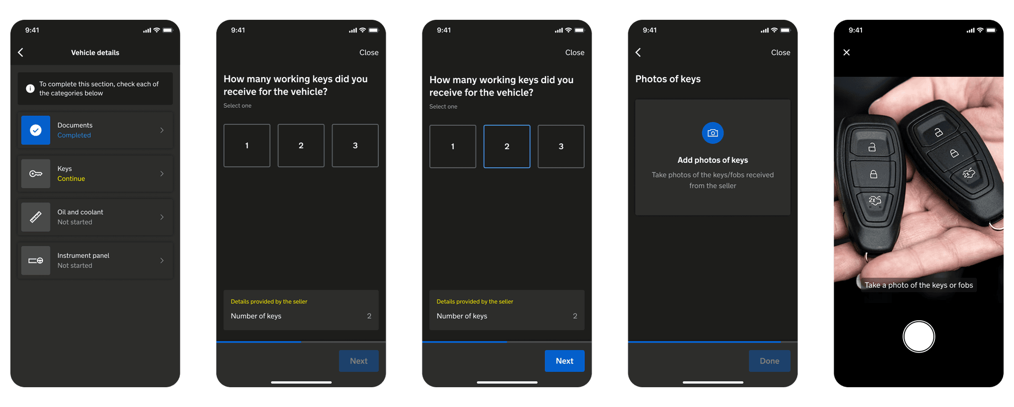 This step-by-step process helps ensure collections are carried out methodically, reducing user error and improving data quality. Each step aligns with the seller submitted profile, helping drivers validate key details (like the number of keys) and capture supporting evidence with photos.